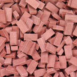 Juweela Dark Red bricks containing 500, 1000, 2000 or 4000  real ceramic model bricks. They can easily be processed by arranging them in different contexts. Glue together with PVA. A sharp pair of tweezers can be useful here!