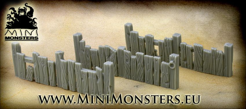 Mini Monsters Fences - 3 pieces - MM-32. This kit includes three wooden fences of gross boards.