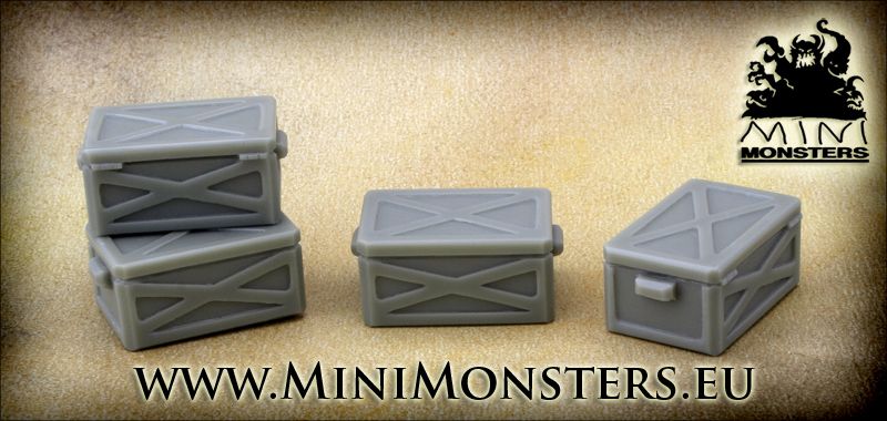 Mini Monsters Metal Boxes - 4pcs - MM-15. This kit contains 4 metal boxes. The models are supplied unpainted._x000D_