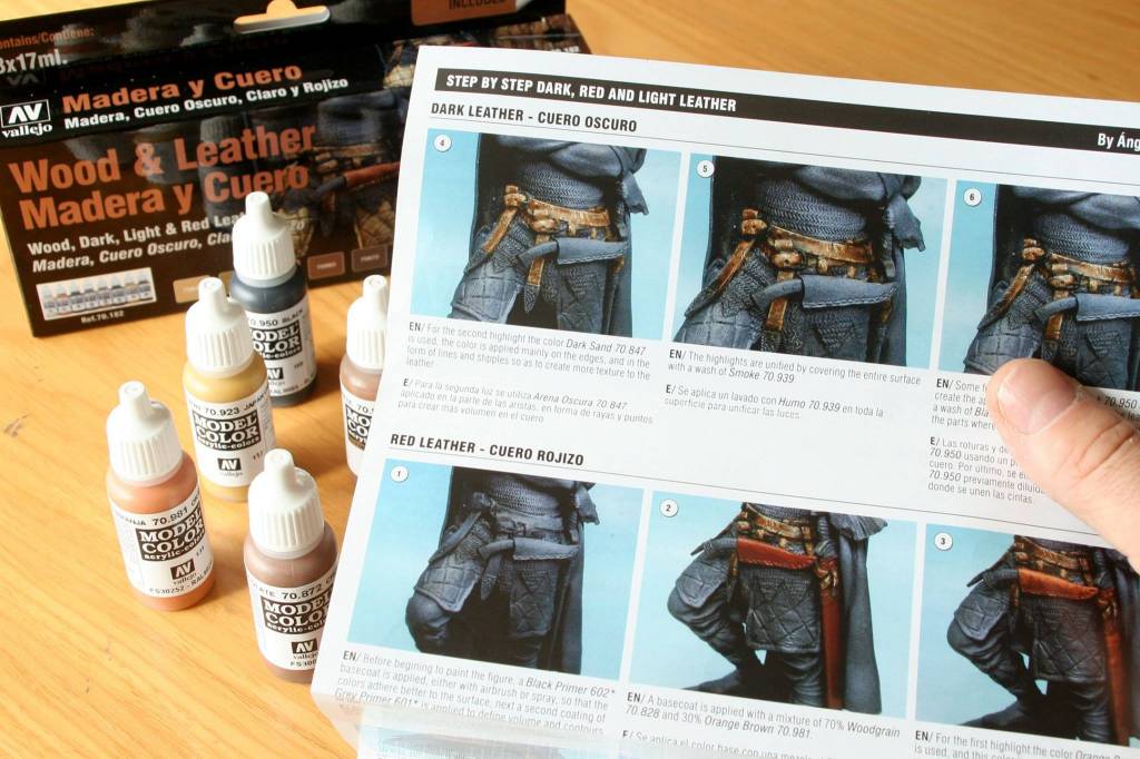 New Wood & Leather set made with the special collaboration of Angel Giraldez. Textures of wood and leather are part of many medieval and modern miniatures, they are present in Viking shields, gun barrels, fences and structures in dioramas, as also in Leather belts, coats and garments. In this set we show a complete step by step process for achieving the different textures and tonalities of these surfaces.