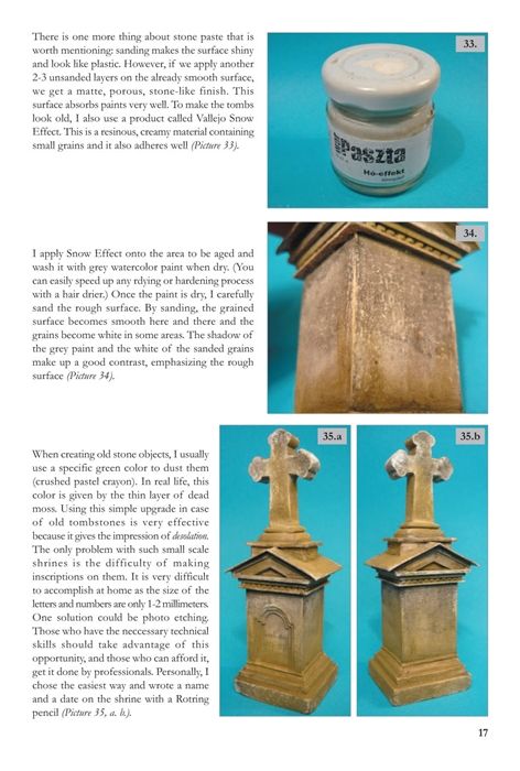 Adoba Diorama Building Dioramas 1 - Stone Objects. Het bouwen van diorama's met stenen objecten is iets waar veel modelbouwers over dromen. Dit boek van László Adoba helpt bij het verwezenlijken van die droom. Stap voor stap wordt aan de hand van 290 kleurenfoto's op 64 pagina's uitgelegd hoe het bouwen van een stenen object gestart kan worden. Volg de instructies in het boek om een bloemenvaas, grafstenen, fonteinen en waterwerken te maken. Zelfs grotere projecten, zoals het bouwen van een compleet paarden monument en een mausoleum maken onderdeel uit van dit boek. Zie de manier waarop László zijn stap-voor-stap handleidingen weergeeft vooral als inspiratie. Met deze basistechnieken is alles te maken.