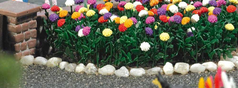 Busch Dahlien H0 1219 (Dahlias 120 St.) bevat verschillende sprues om 120 Dahlia's te kunnen maken in 6 verschillende kleuren: Wit, geel, oranje, rood, roze en paars. Met handleiding hoe deze in elkaar te zetten.