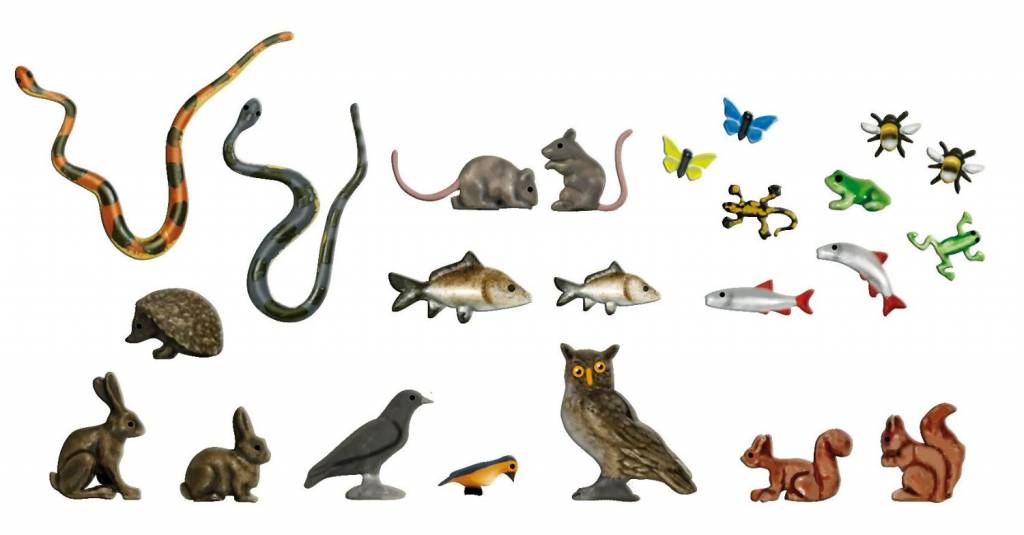 Busch Kleintier-Set HO1153 (kleine dieren set) bevat 76 kleine dieren die geweldig goed gebruikt kunnen worden voor wargames miniaturen. Ze zijn misschien wat klein voor 28mm, maar ze maken bases en dioramas extra gedetailleerd'. De dieren zijn ongeschilderd en kunnen daardoor iedere kleur krijgen die passend zijn voor de base.