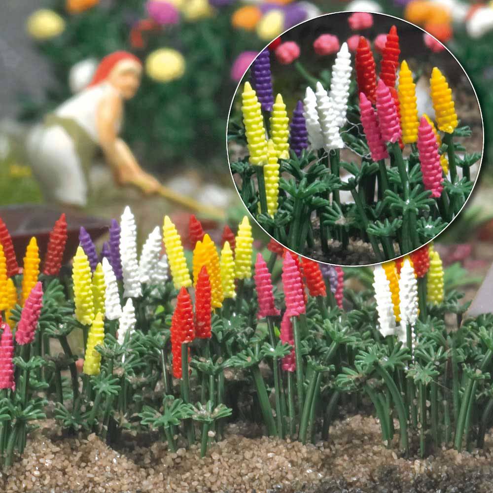 Busch Zier-Lupinen H0 1218 (Sier Lupine 48 St.) bevat genoeg materiaal om 48 gekleurde lupines te maken of 16 complete Lupine struiken. Met handleiding hoe deze in elkaar te zetten.