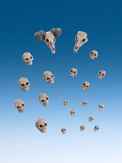 Freebooter Miniatures Schedels - Skulls. Deze set bevat 20 perfect gemodelleerde metalen schedels. Je kunt ze gebruiken voor het decoreren en converterten van miniaturen, bases en terrain.