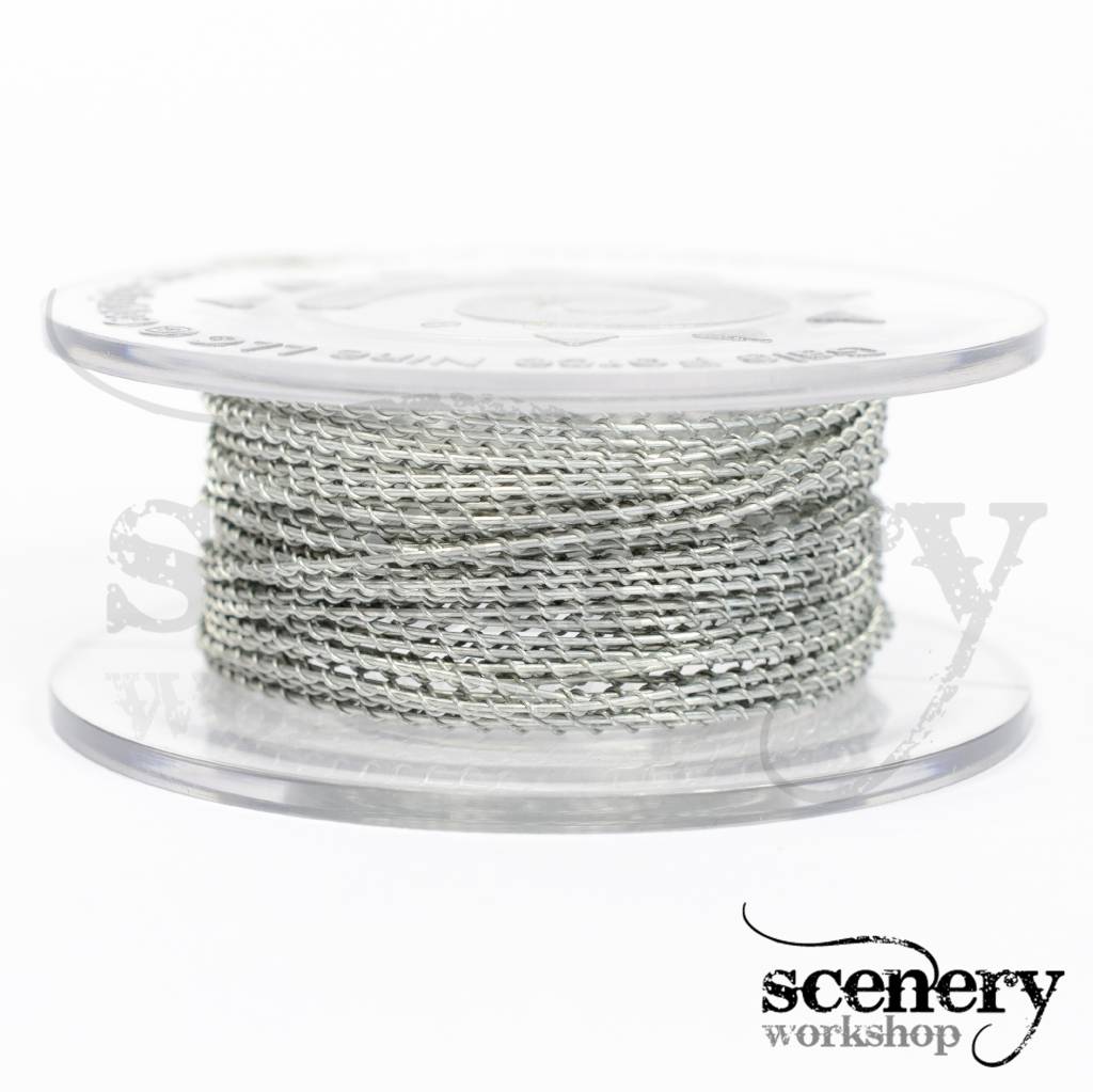 Deze spindle bevat 8 meter Barbed Wire (prikkeldraad) voor 28-30mm. miniaturen. Draai de Barbed Wire om een ronde aansteker zodat er rollen prikkeldraad ontstaan. Het hangt van hoe strak ze gespannen worden anders kan er een heel diorama mee gevuld worden.