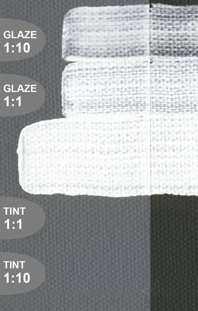 De Golden Acrylics Titanium White is 90% opaque (dekkend) en heeft een Satin of zijdeglans afwerking. Het penseel kan eenvoudig met water schoongemaakt worden.
