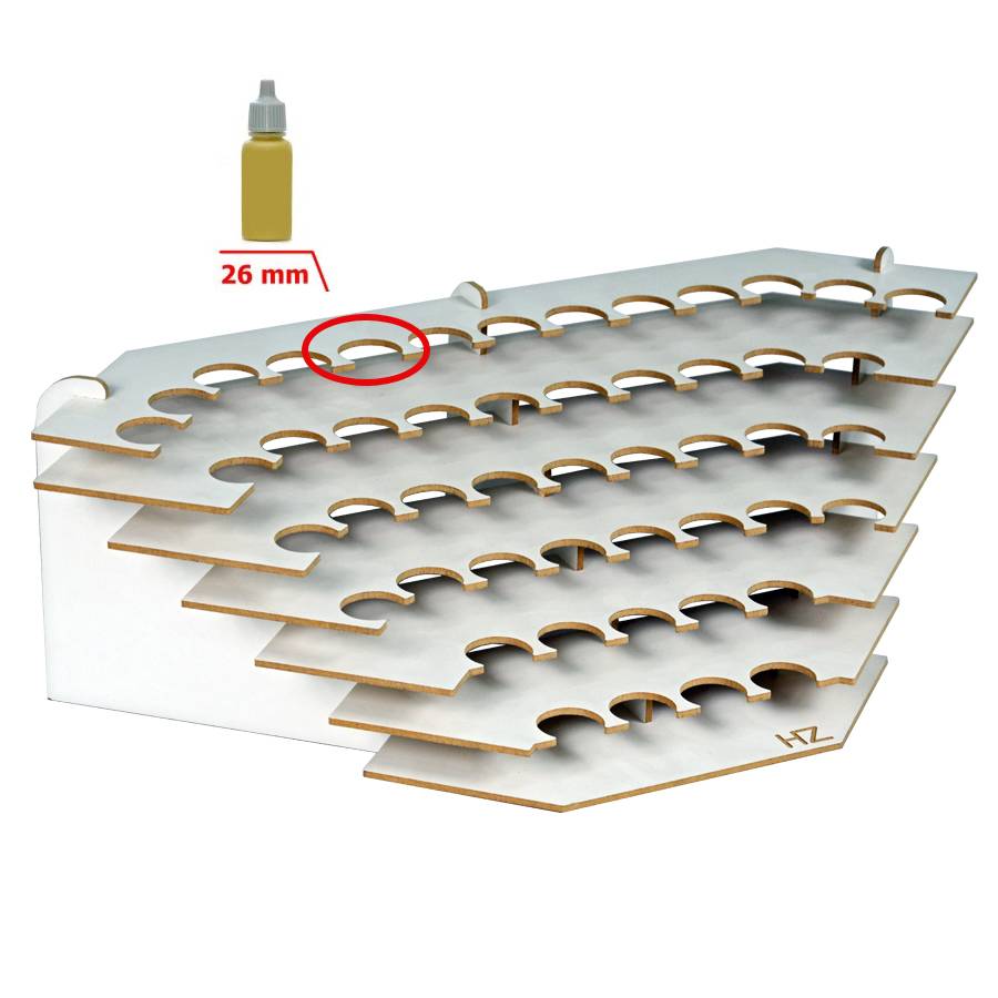 Hobbyzone Large Corner Paint Stand (Verfrek). Dit hoek verfrek is los te gebruiken en in combinatie met de Large Paint Stands voor zowel grote als kleine potjes verf. Dit rek zorgt voor een 90 graden hoek, waardoor het een perfecte hoekoplossing is.