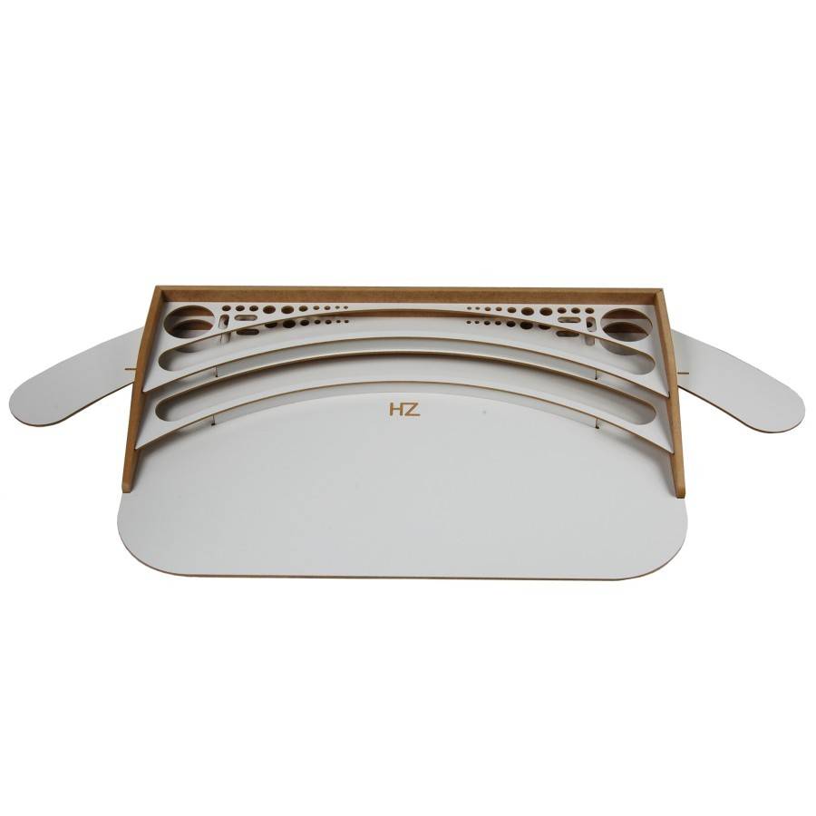 Hobbyzone Paint Station. Dit gelamineerde MDF paint station is 55 cm x 35 cm x 6 cm en heeft twee rijen beschikbaar om verf (zowel Citadel als Vallejo potjes) kwijt te kunnen en een flink aantal gaten om onder andere penselen, vijlen, mesjes en twee water potjes kwijt te kunnen. Het grote werkblad geeft genoeg ruimte om je miniaturen te schilderen. Doordat de platen van een kunststof laagje zijn voorzien is vuil eenvoudig weg te vegen. _x000D_