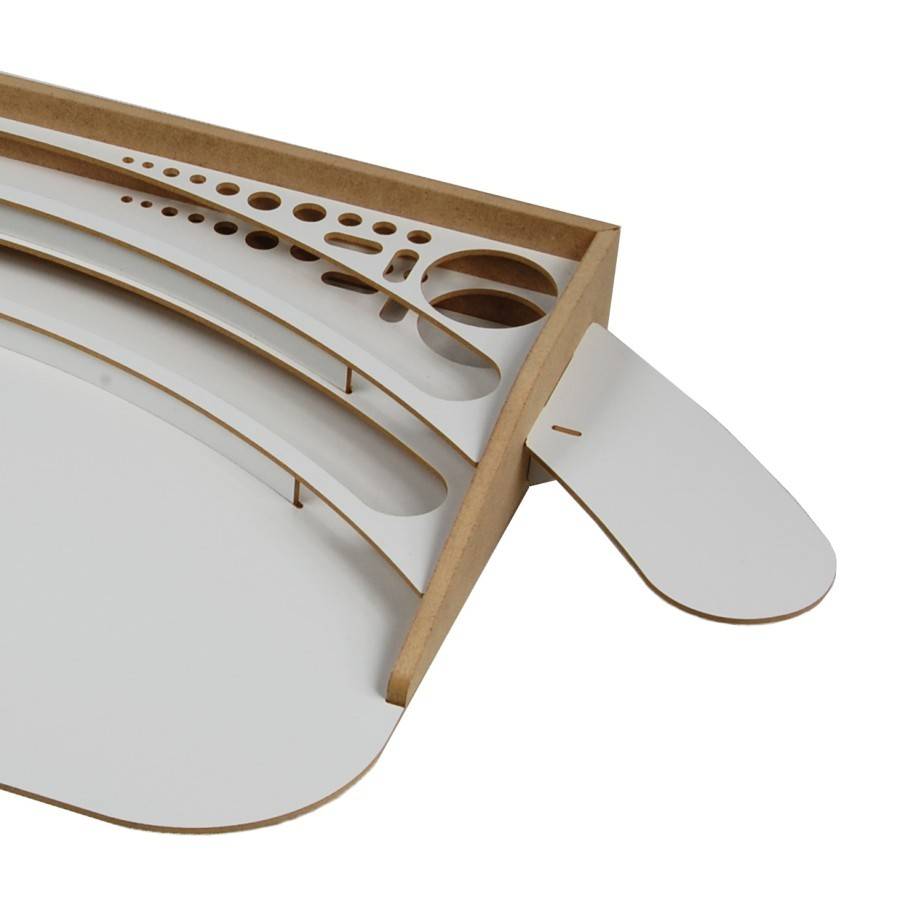 De twee verwijderbare vleugels kunnen gebruikt worden om work-in-progress mini's neer te zetten.