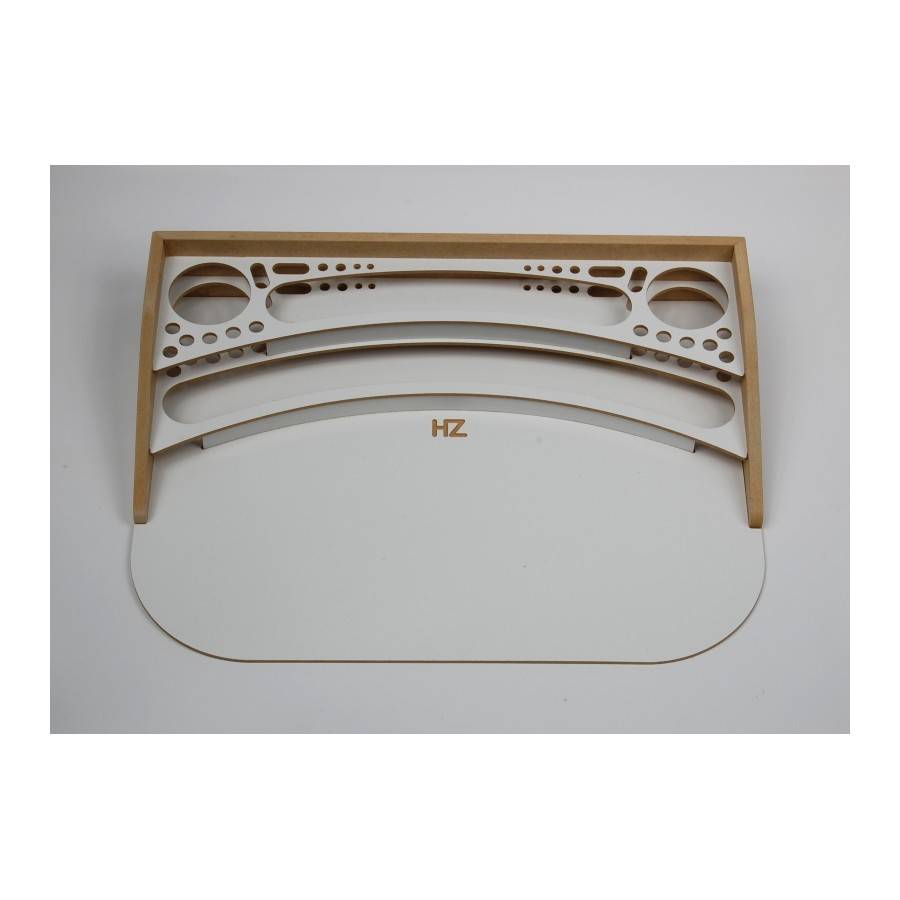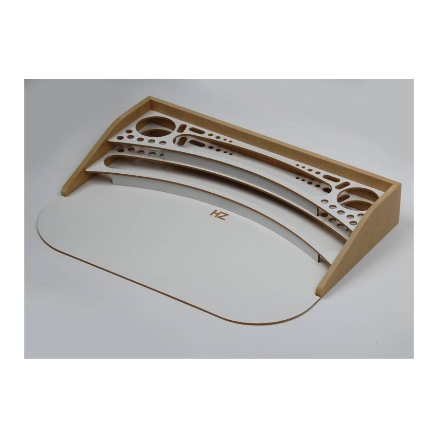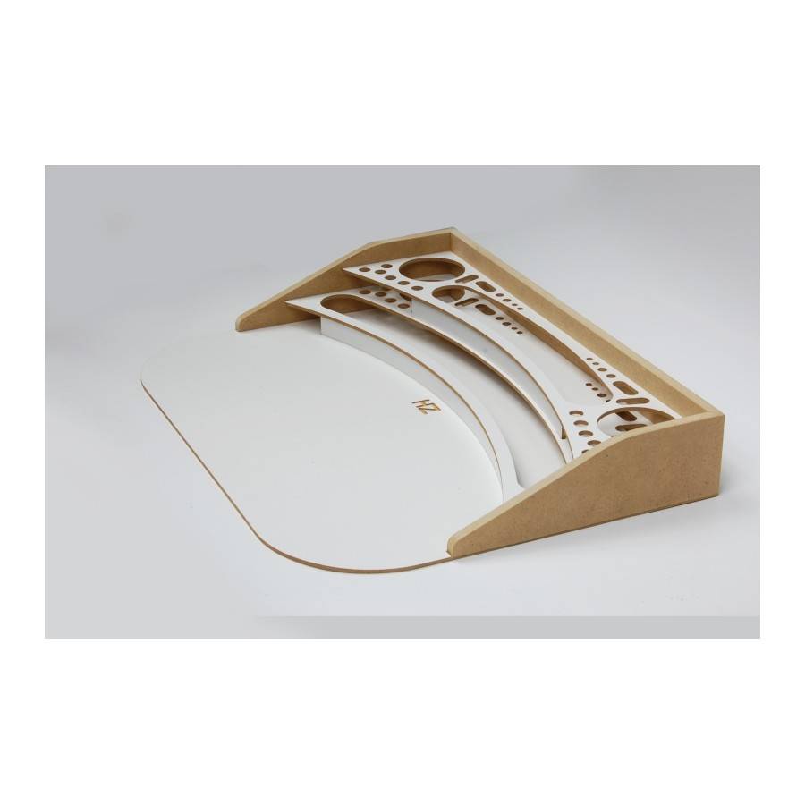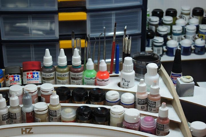 Hobbyzone Paint Station. Dit gelamineerde MDFÂ paint station is 40 cm x 30 cm x 6 cm en heeft twee rijen beschikbaar om verf (zowel Citadel als Vallejo potjes) kwijt te kunnen en een flink aantal gaten om onder andere penselen, vijlen, mesjes en twee water potjes kwijt te kunnen. Het grote werkblad geeft genoeg ruimte om je miniaturen te schilderen. Doordat de platen van een kunststof laagje zijn voorzien is vuil eenvoudig weg te vegen.