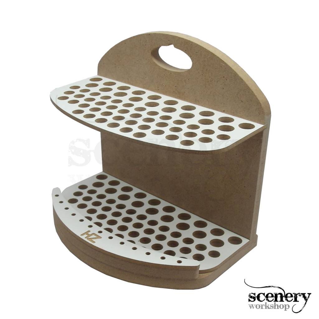 Hobbyzone Penseel en tools houder bevat ruimte voor 74 penselen en tools en is gemaakt van hoogwaardig MDF. Met deze houder kun je veilig je penselen en tools (zoals boortjes, pincetten, pipetten, sculpters) opbergen. Geweldig om je werkplek een beetje opgeruimd te houden. De houder heeft 74 gaten van verschillende diameters, zodat er diverse gereedschappen in opgeborgen kunnen worden. Ook heeft de houder een handig handvat om het makkelijk te verplaatsen of om het op te kunnen hangen.