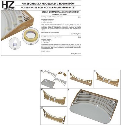 Het paint station is eenvoudig in elkaar te zetten met behulp van de bouwinstructies. De onderdelen passen precies in elkaar. Met wat houtlijm zijn de onderdelen met elkaar te verlijmen, maar is niet perse nodig aangezien de verschillende onderdelen perfect in elkaar passen.