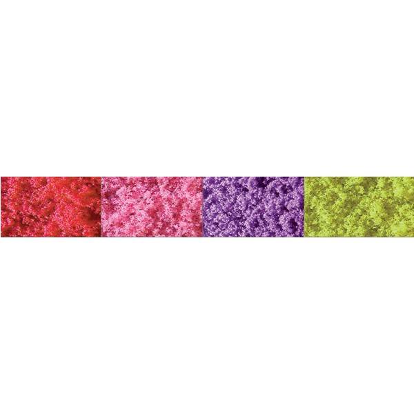 Dit is de Blossom Turf Medium - Red Pink Purple Yellow - (95146 - TU-3002) in de volgende kleuren: rood, roze, paars, en geel in een 9x9cm zakje van JTT Scenery Products.