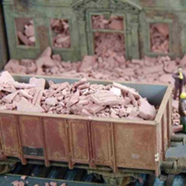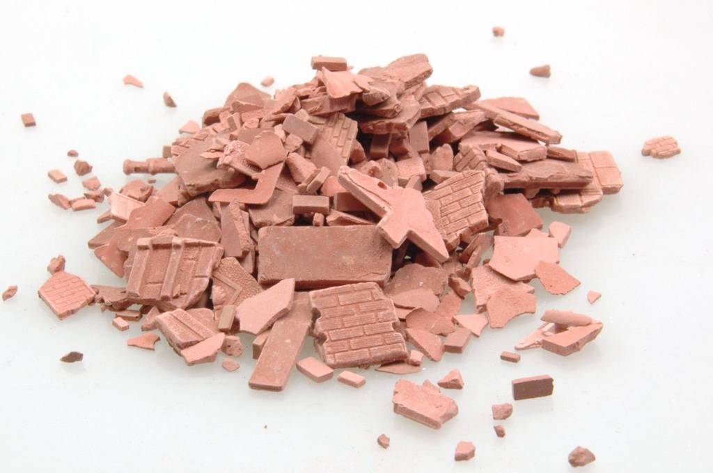 Juweela Bouwrommel Rood - 75g - 24135. Set met diverse soorten bouwafval zoals halve muren, vloeren, kozijnen in rood keramiek. Schaal 1:45.