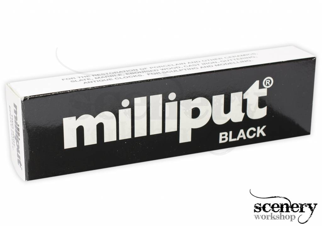 Milliput Black is een van de bekendste epoxy putty producten om te modelleren, maar dan in een echt donkere bijna zwarte kleur. Het materiaal werkt zoals het bekende GreenStuff. Milliput bestaat ook uit twee componenten (2x 56,7 gr.) en door deze goed te vermengen (5 min. goed kneden) zal het materiaal langzaam gaan uitharden, waarna het na 3 uur volledig uitgehard is. Door de putty koel, droog en luchtdicht te bewaren blijft het ongeveer 2 jaar bruikbaar.