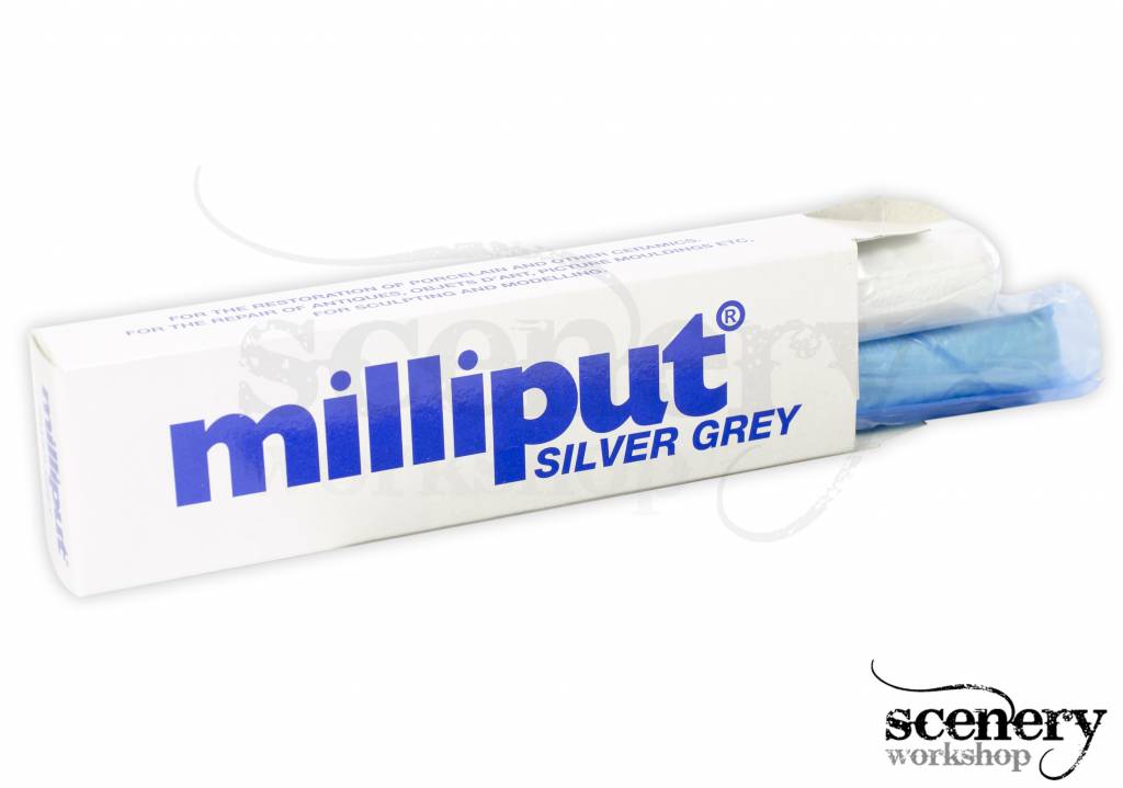 Milliput Silver Grey is een van de bekendste epoxy putty producten om te modelleren, maar dan in een zilvergrijze kleur en is wat fijner van structuur dan de standaard Milliput. Het materiaal werkt zoals het bekende Green Stuff. Milliput bestaat ook uit twee componenten (2x 56,7 gr.) en door deze goed te vermengen (5 min. goed kneden) zal het materiaal langzaam gaan uitharden, waarna het na 3 uur volledig uitgehard is. Door de putty koel, droog en luchtdicht te bewaren blijft het ongeveer 2 jaar bruikbaar.