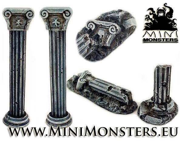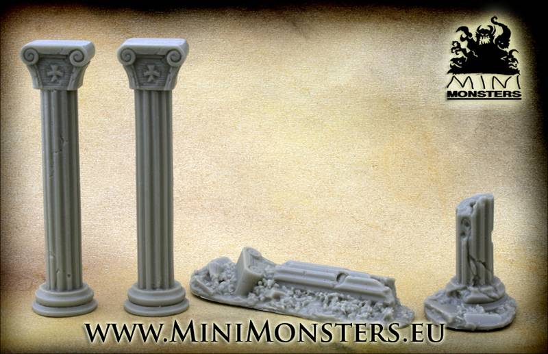 Mini Monsters Corinthian Columns - 4st - MM-28. Deze kit bevat 2 volledige Korintische zuilen en twee half verwoeste zuilen.Â
