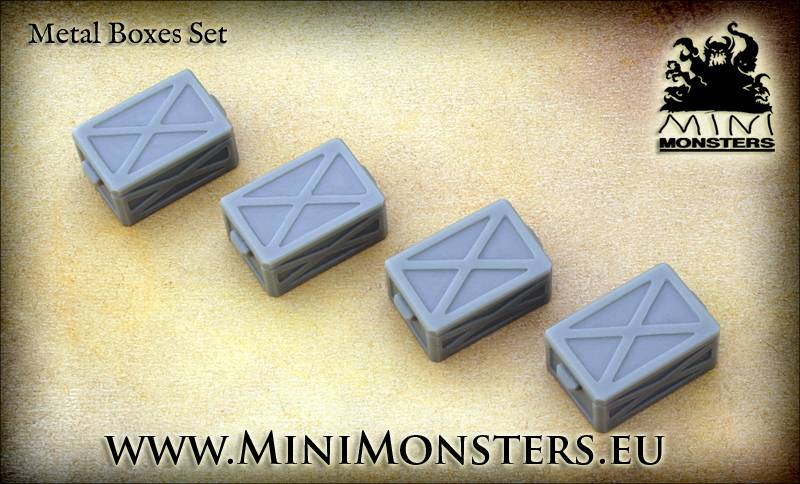 Mini Monsters Metal Boxes - 4st - MM-15. Deze kit bevat 4 metalen dozen. De modellen worden onbeschilderd geleverd._x000D_