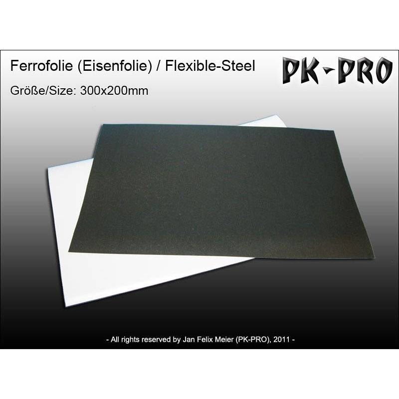 PK-Pro Flexibale Rubbersteel sheet - De flexibele zelfklevende ijzer-rubber platen zijn geschikt voor het gebruik met rare earth magneten en andere magnetische oppervlakten. Door deze op maat te knippen of snijden kun je heel eenvoudig complete regimenten altijd op hun plek laten staan, zonder dat ze bijvoorbeeld omvallen. Vooral Standard bearers hebben hier voordeel van, omdat deze vaak topzwaar zijn.