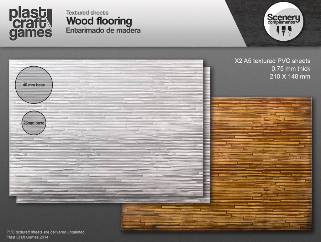 Dit is textured plasticard met Houten vloer structuur. Dit product kan worden gebruikt als een aanvulling voor miniatuur scenery, diorama's, gameboard oppervlakken of het aanpassen van miniatuur bases. Het plasticard met textuur is eenvoudig te snijden met een scherp mes of te knippen met een schaar. Gebruik voor het verlijmen plasticlijm en kunnen nadat ze voorzien zijn van een primer met acrylverf beschilderd worden.