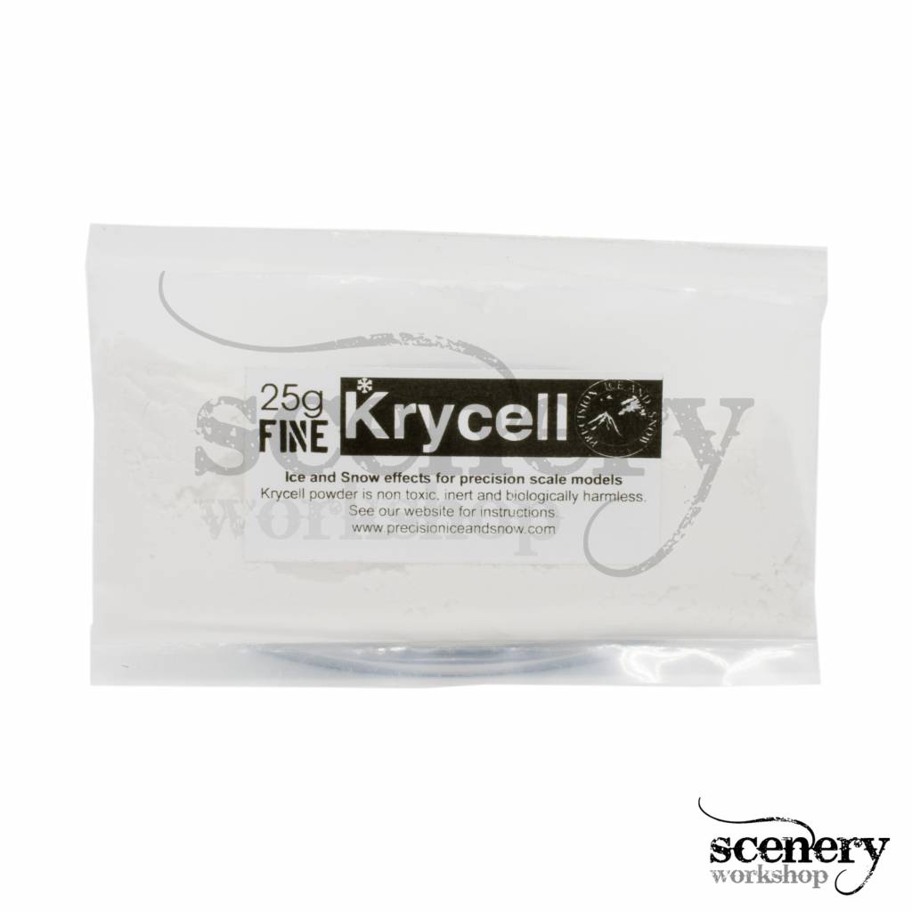 Krycell Fine 25gr is een extra fijn poeder dat speciaal ontwikkeld is om verse sneeuw na te bootsen voor schaal 1:35 (54mm) en kleiner. Dit poeder geeft een realistisch sneeuweffect tot schaal 1:160 (N-schaal). De veelzijdigheid van dit materiaal zorgt ervoor dat zelfs directionele sneeuwval (tijdens een sneeuwstorm) en frosting effecten bereikt kunnen worden.