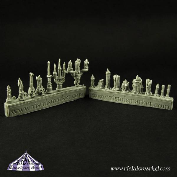 Set bestaat uit 17 elementen: 7 kandelaars en 10 kaarsen (zoals op de foto's).