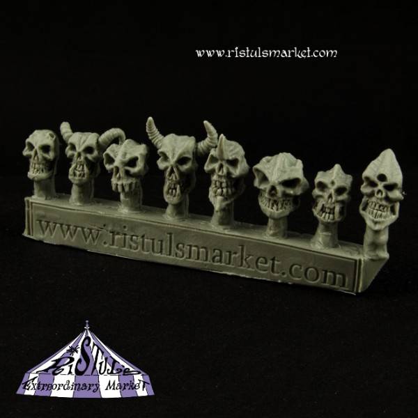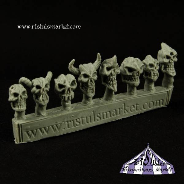 Set bevat 8 Demon schedels met hoorns en demonische vergroeiingen.