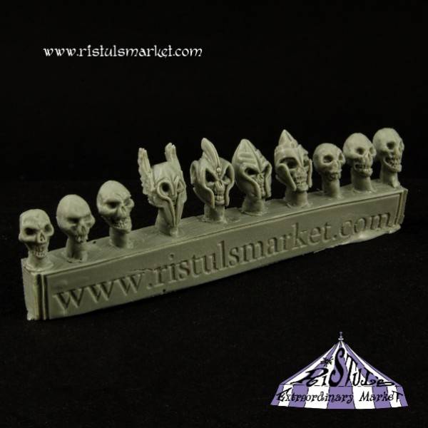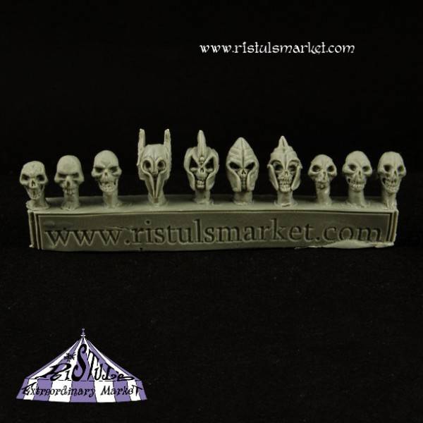 Set bestaat uit de 10 Elven schedels waarvan 4 schedels met helmen.