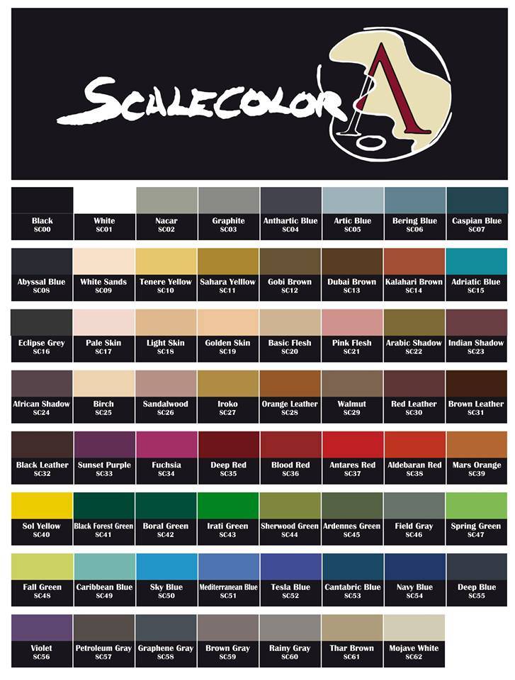 Black, White, Nacar, Graphite, Anthartic Grey, Artic Blue, Bering Blue, Caspian Blue, Abyssal Blue, White Sands, Tenere Yellow, Sahara Yellow, Gobi Brown, Dubai Brown, Kalahari Orange, Adriatic Blue, Eclipse Grey, Pale Skin, Light Skin, Golden Skin, Basic Flesh, Pink Flesh, Arabic Shadow, Indian Shadow, African Shadow, Birch, Sandalwood, Iroko, Orange Leather, Walnut, Red Leather, Brown Leather, Black Leather, Sunset Purple, Fuchsia, Deep Red, Blood Red, Antares Red, Aldebaran Red, Mars Orange, Sol Yellow, Black Forest Green, Boral Green, Irati Green, Sherwood Green, Ardennes Green, Field-Gray, Spring Green, Fall Green, Caribbean Blue, Sky Blue, Mediterranean Blue, Tesla Blue, Cantabric Blue, Navy Blue, Deep Blue, Violet, Petroleum Gray, Graphene Gray, Brown Gray, Rainy Gray, Thar Brown, Mojave White