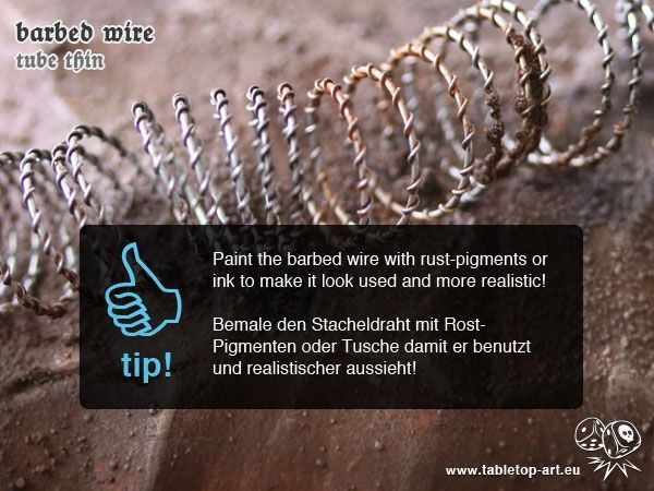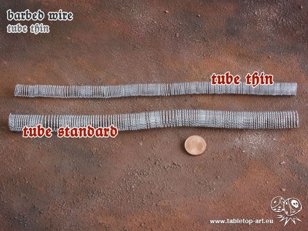 De draad is een imitatie van prikkeldraad voor schaal 15mm to 20mm, maar is niet scherp vanwege het ontbreken van de prikkers. Het prikkeldraad is ongeveer 20cm lang in een strak opgerolde buis. De versie "thin" is uitstekend geschikt voor miniaturen en terrein met een schaal van 20mm en 15mm.