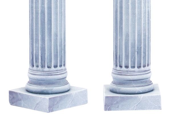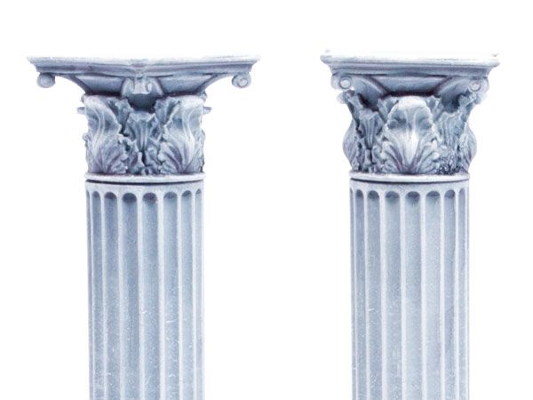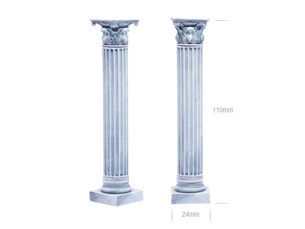Tabletop-Art Corinthian columns Set 1 (TTA800020). De set bevat 2x Corinthische zuilen. Elke zuil bestaat uit drie delen: basis, zuil en hoofdstuk. De zuilen hebben een totale hoogte van 110mm.