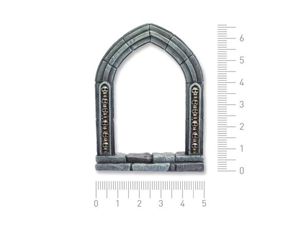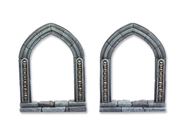 Tabletop-Art Dungeon Gate 2 (TTA800011). De set bevat een dungeon poort met skulls reliëf van resin. Geschikt voor tabletop games in schaal 28-30mm. De standplaats van de poort is 25x50mm.