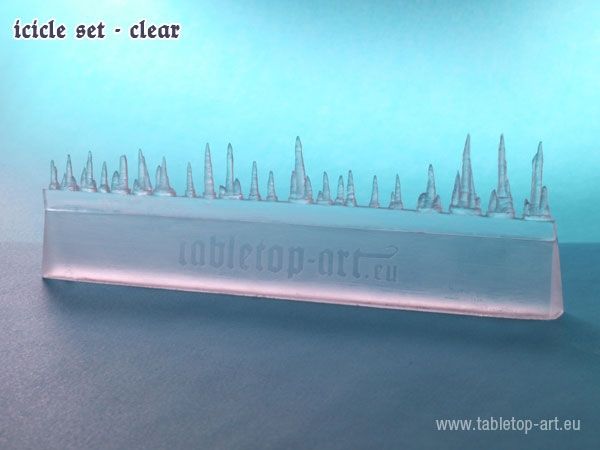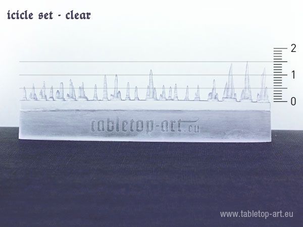 Tabletop-Art Icicle set clear (IJspegel set transparant) (TTA601045) bevat 22 transparante ijspegels in lengte variërend van 5-16mm. speciaal voor gebruik met 28mm miniaturen.