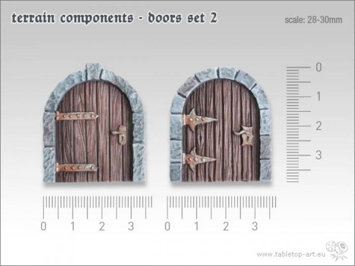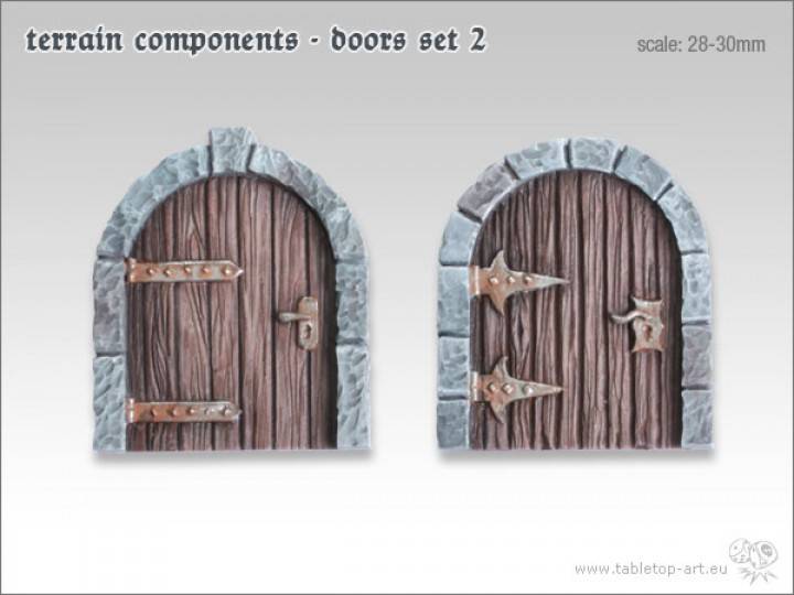 De set bevat twee verschillende "houten" gesloten deuren die kunnen worden bevestigd aan een gebouw. Beiden hebben verschillende scharnieren. Alleen de voorzijde is gedetailleerd.