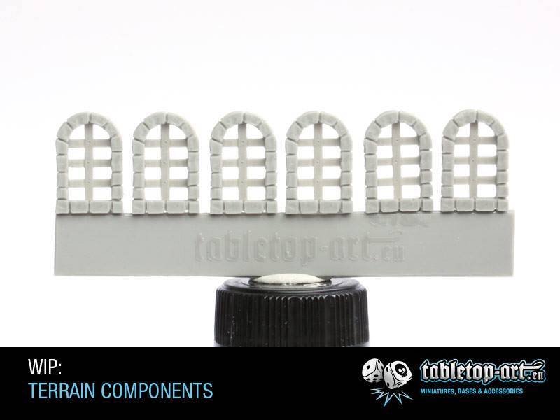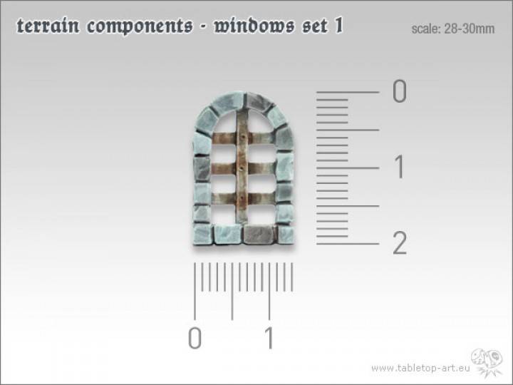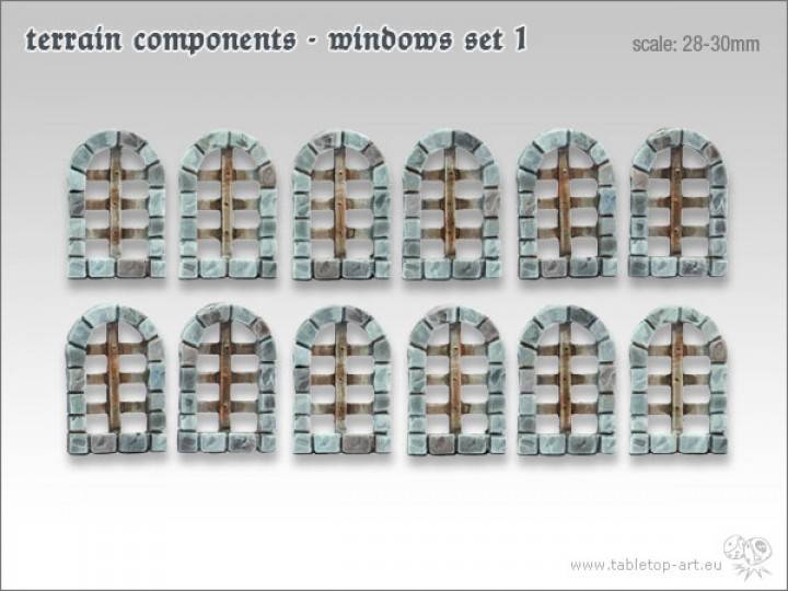 De set bevat 12x ramen met kozijnen die op een gebouw bevestigd kunnen worden. Het zijn 2 sets van 6 ramen.