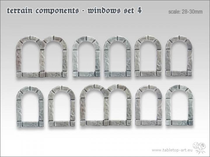 De set bevat 10x ramen die op een gebouw bevestigd kunnen worden. Twee daarvan zijn dubbele ramen.