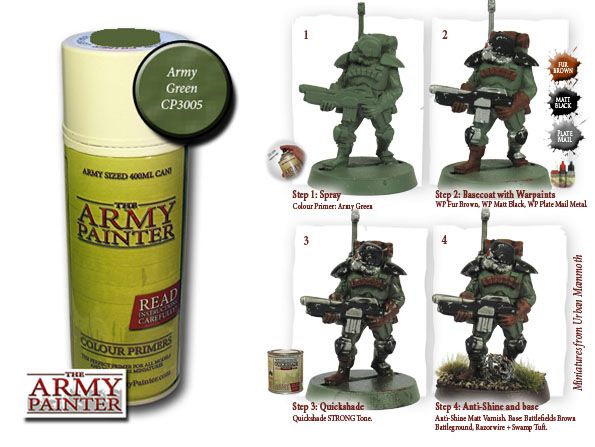 The Army Painter Army Green - Colour Primer, is een groen grijze kleur, waardoor het een onmisbare kleur is voor de orc legers. De groenige kleur dekt perfect.