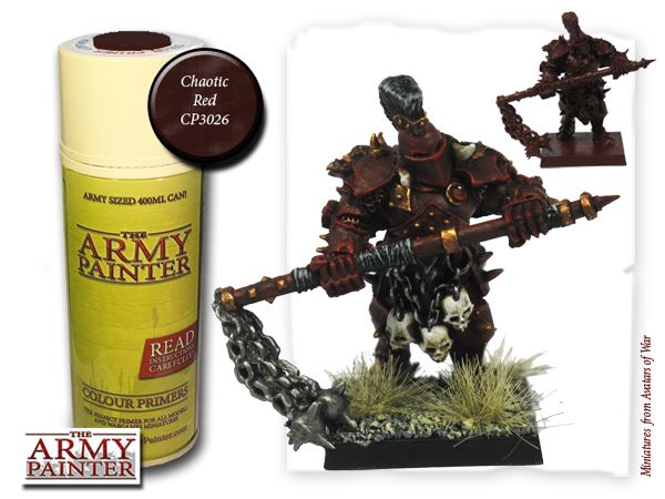 The Army Painter Chaotic Red Colour Primer (CP3026) is een rijke dieprode grondverf in een spuitbus dat als perfecte basis kan dienen voor iedere rode kleur. Zoals de naam al doet vermoeden is deze grondverf een musthave voor Chaos miniaturen of ieder andere groep futuristisch oorlogstuig en monsters.