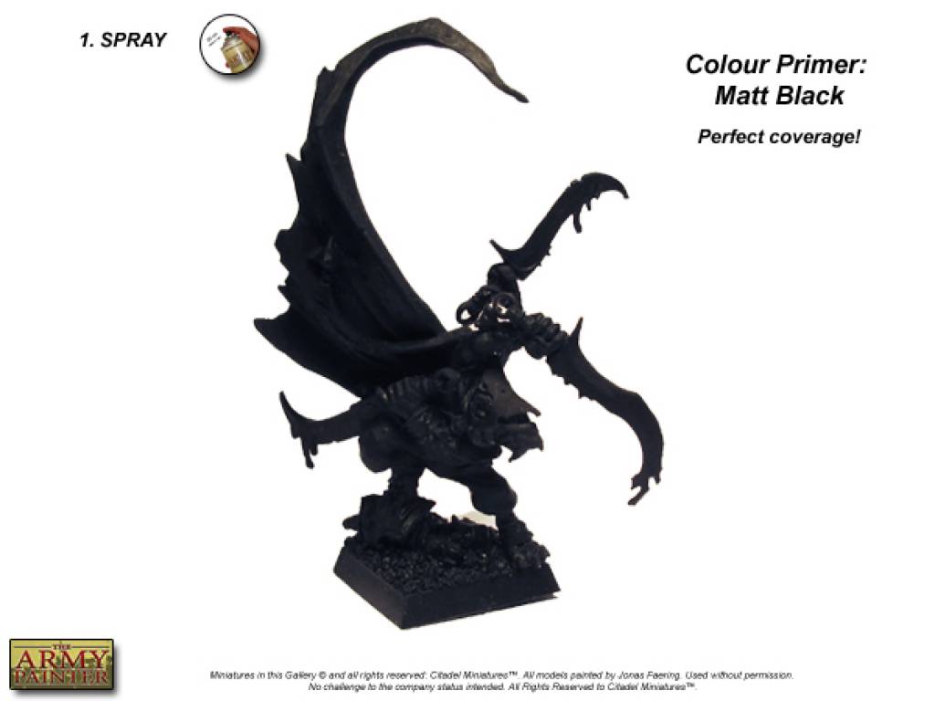 The Army Painter Matt Black - Colour Primer, zonder gekheid de beste zwarte grondverfspray op de markt. Super mat en met een fantastische dekkingskracht waarmee de mianituren in een perfecte conditie zijn om te beschilderen.