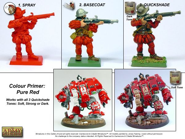 Het fijne pigment maakt deze Colour Primer Pure Red - fel rode kleur primer de perfecte grondverf voor alle schilderprojecten. De verf droogt snel en houdt ieder detail op het model in perfecte conditie. Voeg nog wat extra details toe met kleur aan de miniatuur en dip het daarna in Quickshade. De kleur van Pure Red zorgt dan al voor het meeste werk!