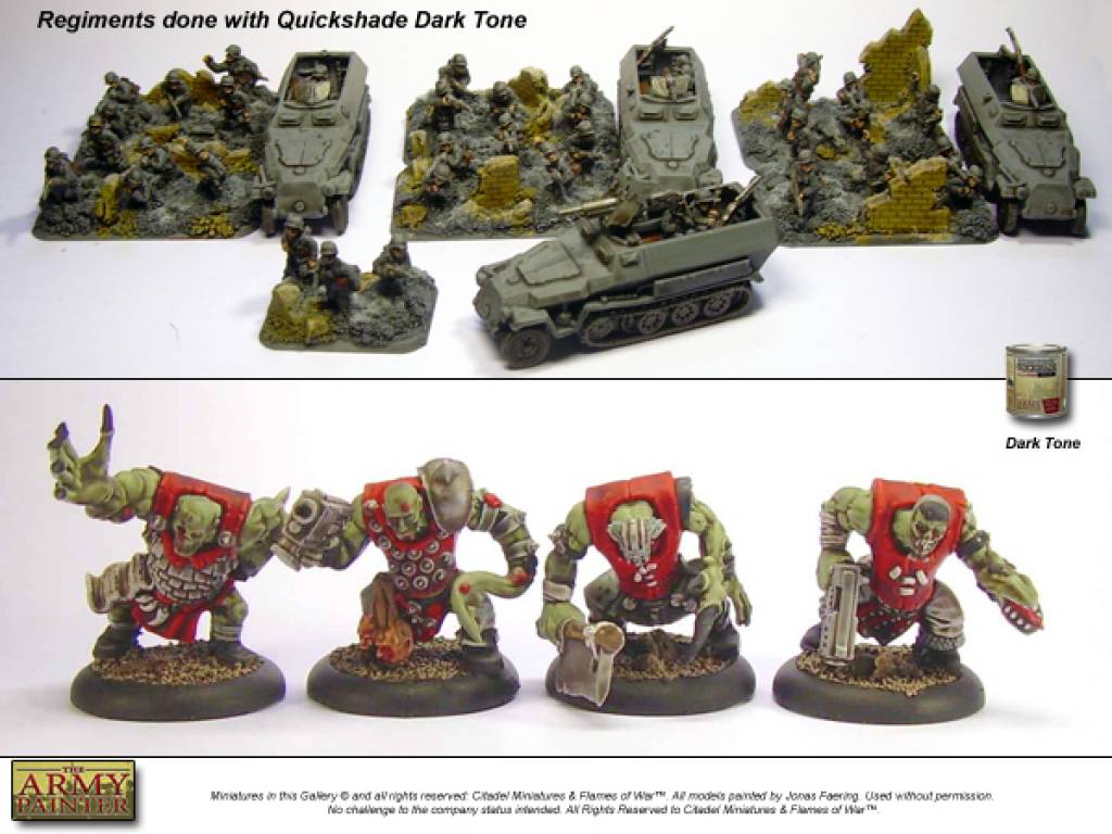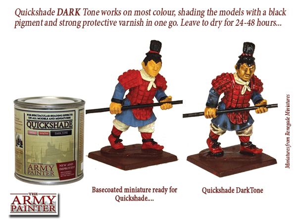 Quickshade is speciaal ontwikkeld en bedacht om te werken met 10-28mm miniaturen and mag niet verward worden met goedkope vloervernissen op kleur en schoenpoetsmiddelen. Deze zijn te grof voor de miniaturen.     Â