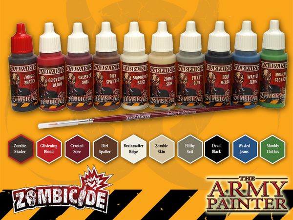 The Army Painter Warpaints Zombicide Core Zombie Set. Zombicide fans opgelet! Dit is de ultieme verfset voor elk type zombie.  Met kleuren als "BrainMatter Beige" en "Crusted Sore " en nog veel erger, heeft het The Army Painter team flinke klus geklaard.