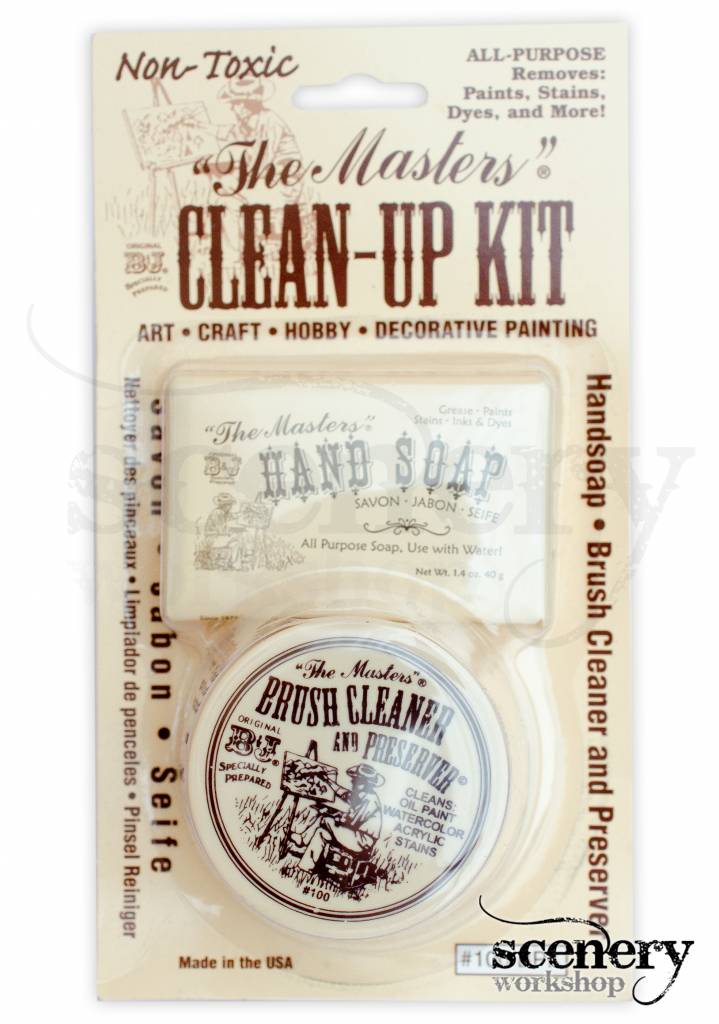 Sinds 1979 kunnen schilders vertrouwen op de originele B&J The Masters Brush Cleaner and Preserver. Deze reiniger verzorgt en conditioneert met de grootste zorg penselen zonder al te veel moeite. Deze Clean-up kit bevat een potje met 28,3 gr The Masters reiniger en een stuk handzeep. Kunstenaars zweren erbij. De handzeep van The Masters staat er bekend om verf eenvoudig van je handen af te krijgen.