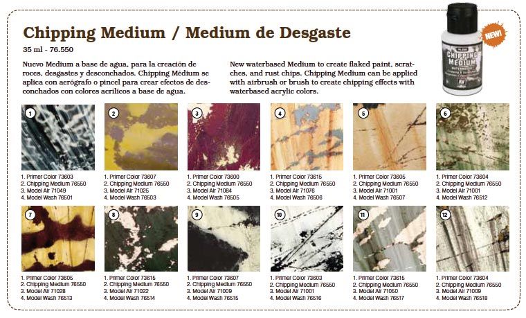 New waterbased Medium to create flaked paint, scratches, and rust chips. Chipping This medium can be applied with airbrush or brush to create chipping effects with waterbased acrylic colors.