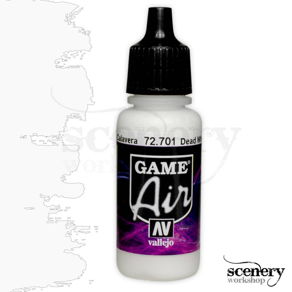 Vallejo Game Air Dead White (72701) is een witte airbrush acrylverf in een handig 17ml. eyedropper flesje.