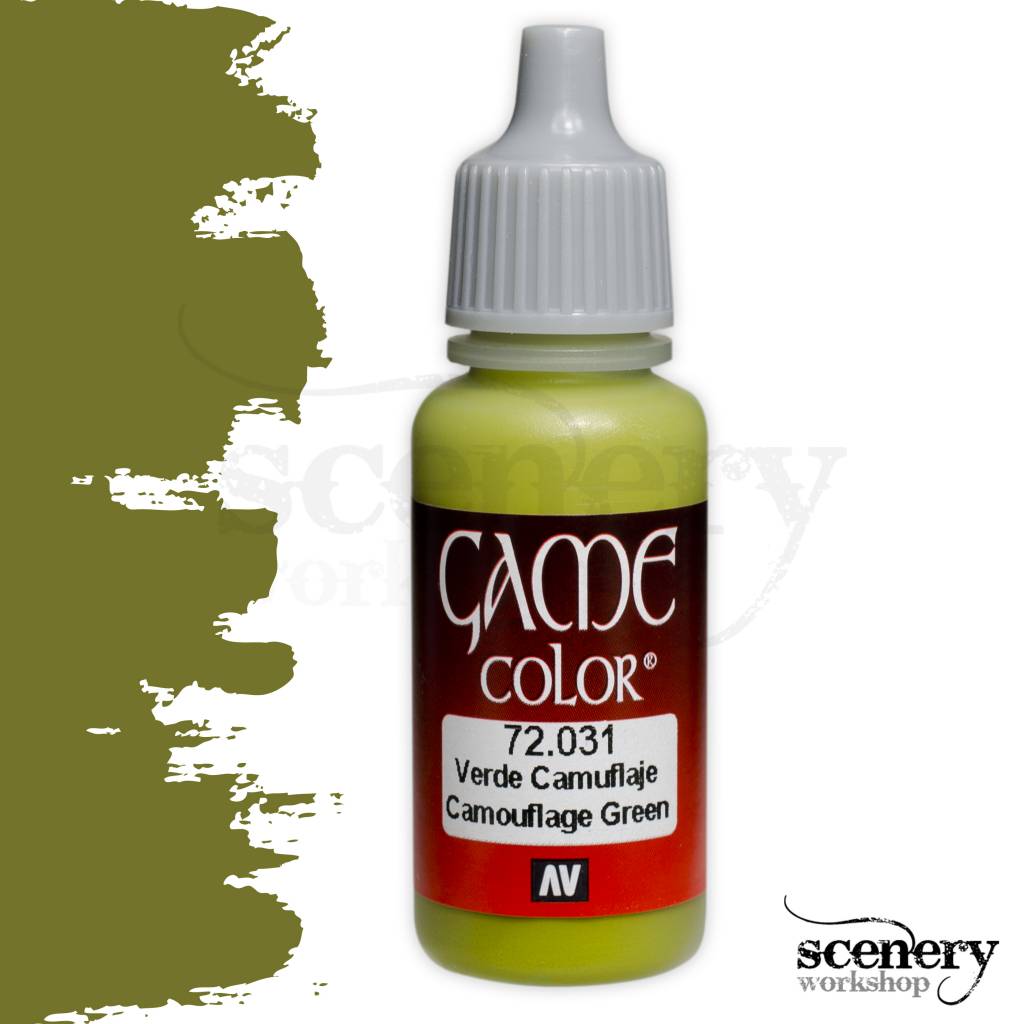 Vallejo Game Color Camouflage Green maakt deel uit van het Game Color programma van het merk Vallejo en is een camouflage acrylverf in een 17ml. eyedropper potje.
