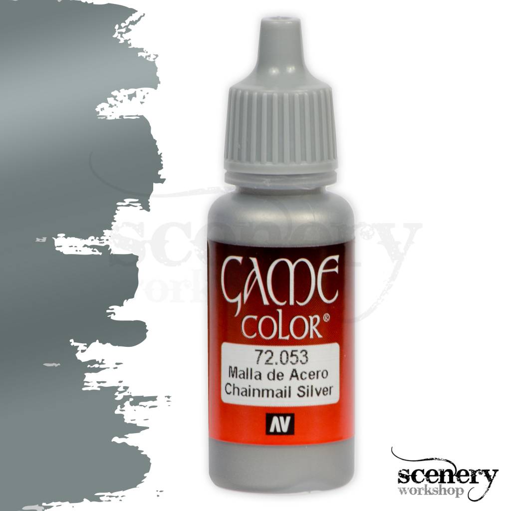 Vallejo Game Color Chainmail Silver maakt deel uit van het Game Color programma van het merk Vallejo en is een zilveren acrylverf in een 17ml. eyedropper potje.