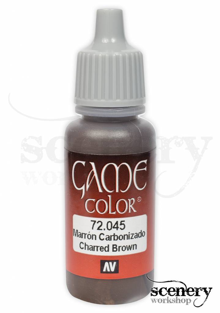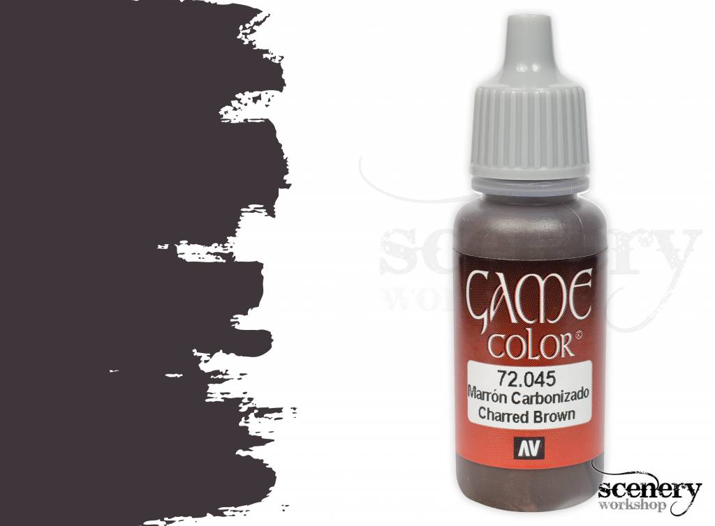 Vallejo Game Color Charred Brown maakt deel uit van het Game Color programma van het merk Vallejo en is een donkerbruine acrylverf in een 17ml. eyedropper potje.