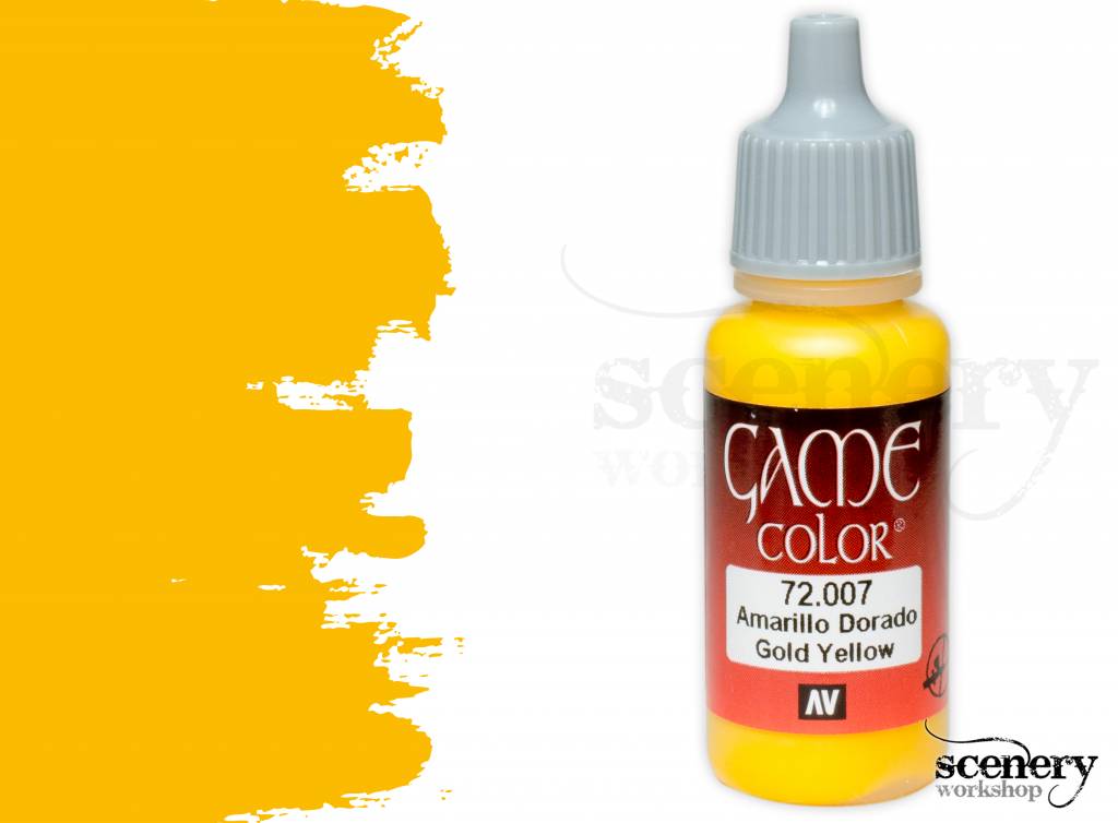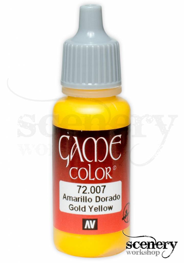 Vallejo Game Color Gold Yellow maakt deel uit van het Game Color programma van het merk Vallejo en is een donker gele acrylverf in een 17ml. eyedropper potje.